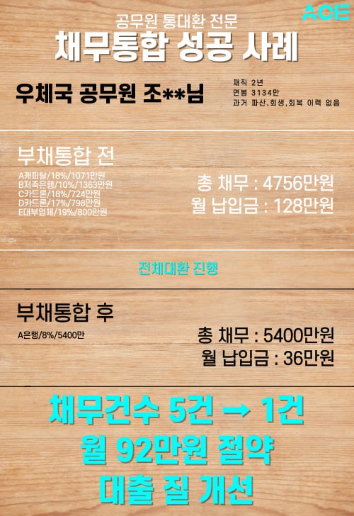 우체국 입사전 대출과 고금리 악성 채무로 신용점수가 저조한 상황.