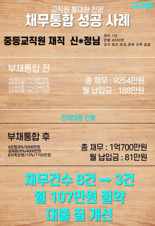 A은행 5000만원, 공제회 4000만원, B저축은행 1700만원 / 채무통합 완료!