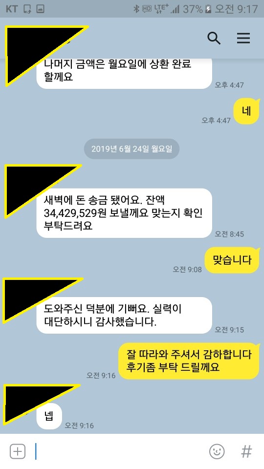 ★통대환 완료 후 실제 고객 문자