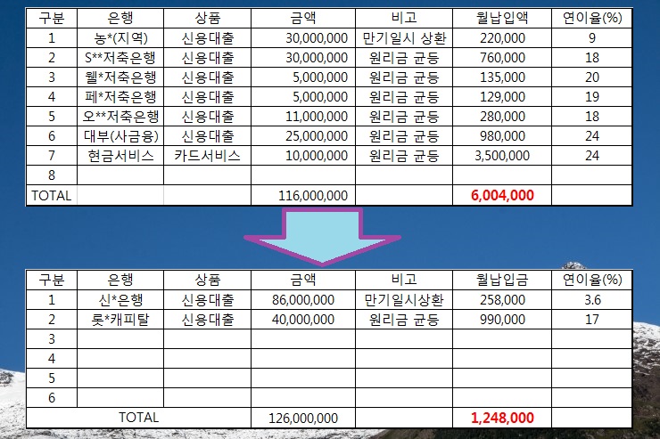 ★고객 통대환대출 전/후 상황