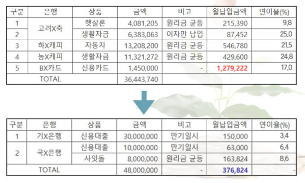 ★고객 통대환대출 전/후 상황