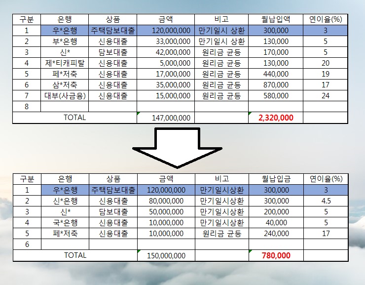 1금융권대출과 사내 지급보증담보대출(사내대출) 완료.