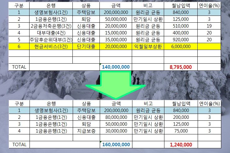 ★고객 통대환대출 전/후 상황