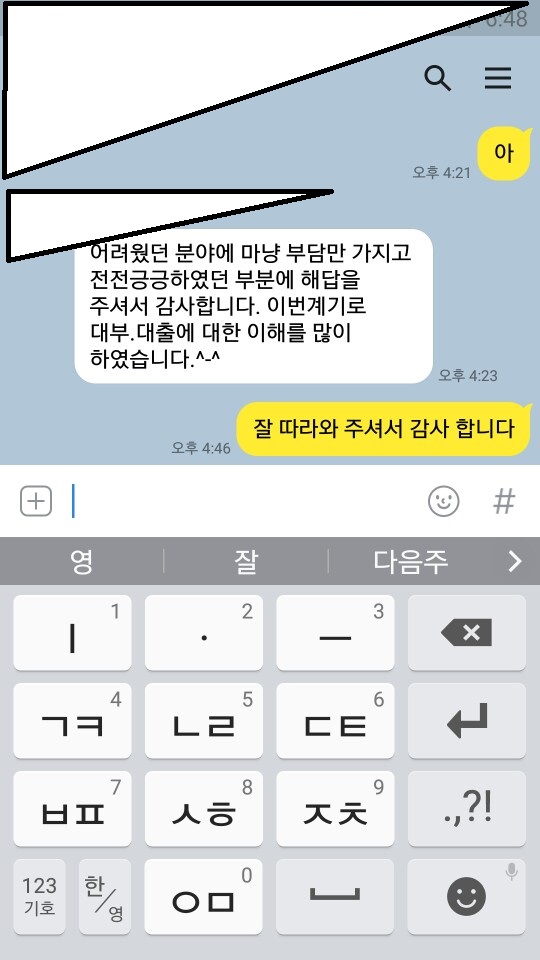 ★통대환 완료 후 실제 고객 문자